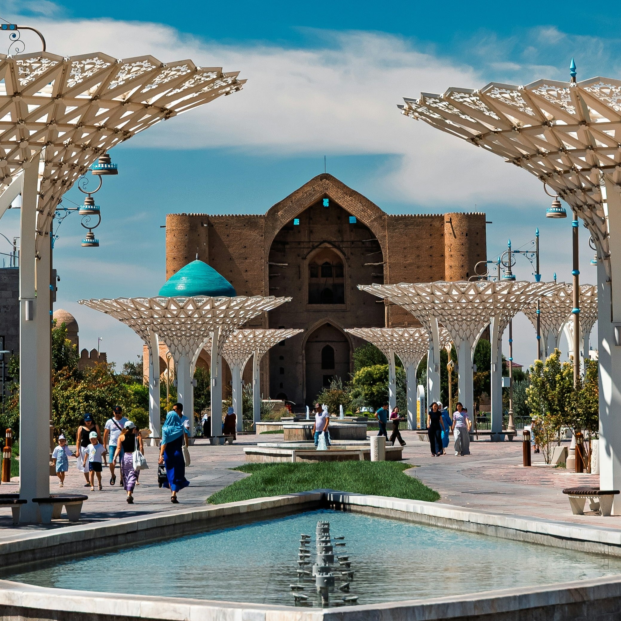 - Khoja Ahmed Yasawis mausoleum – Et UNESCO-verdensarvssted og et af de vigtigste spirituelle steder i Centralasien.